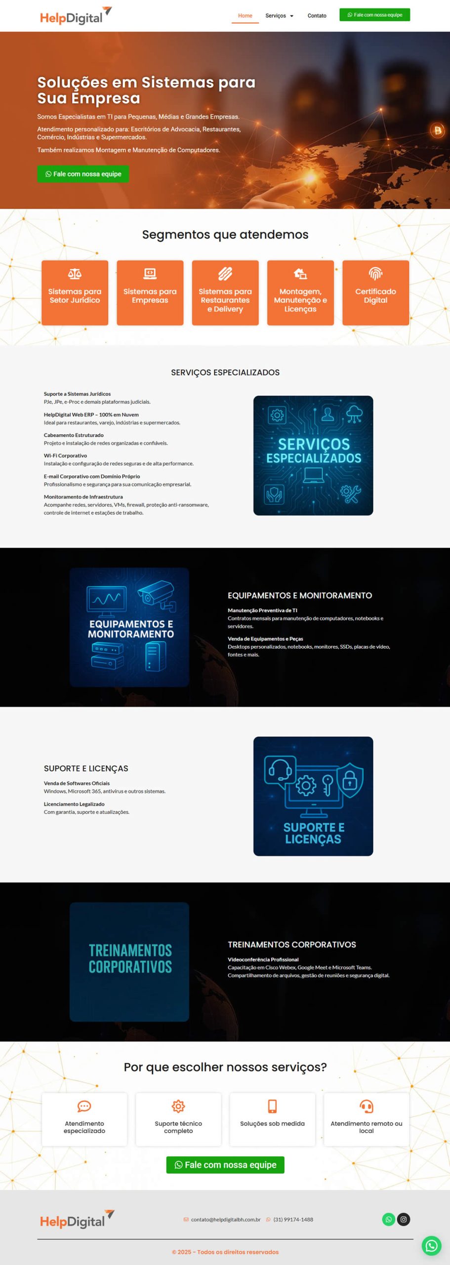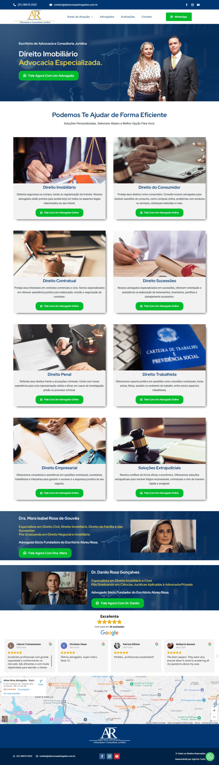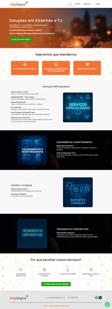 Estrutura pensada para transformar visitantes em clientes. Incluímos botões estratégicos, formulários e integração com WhatsApp.