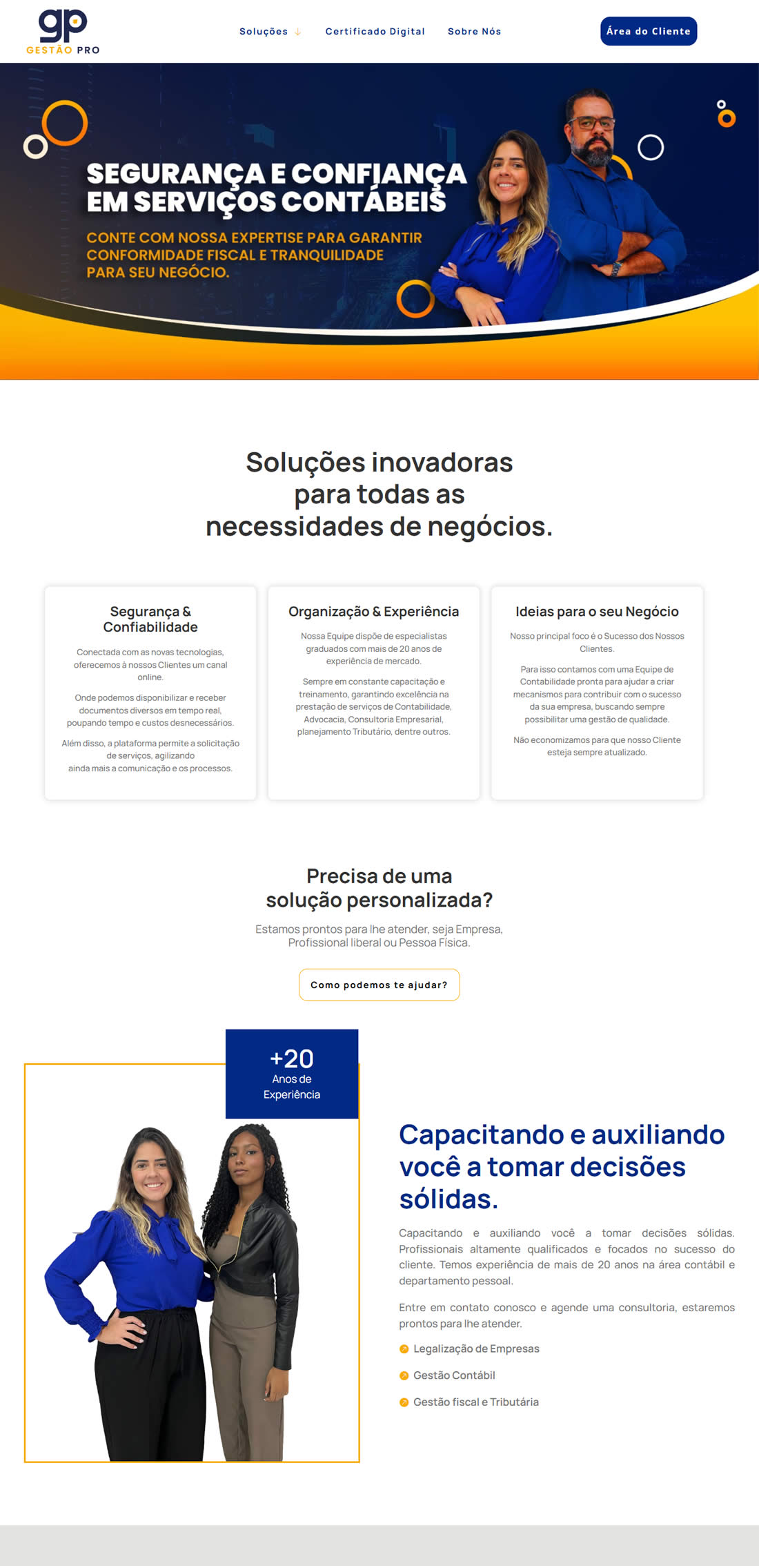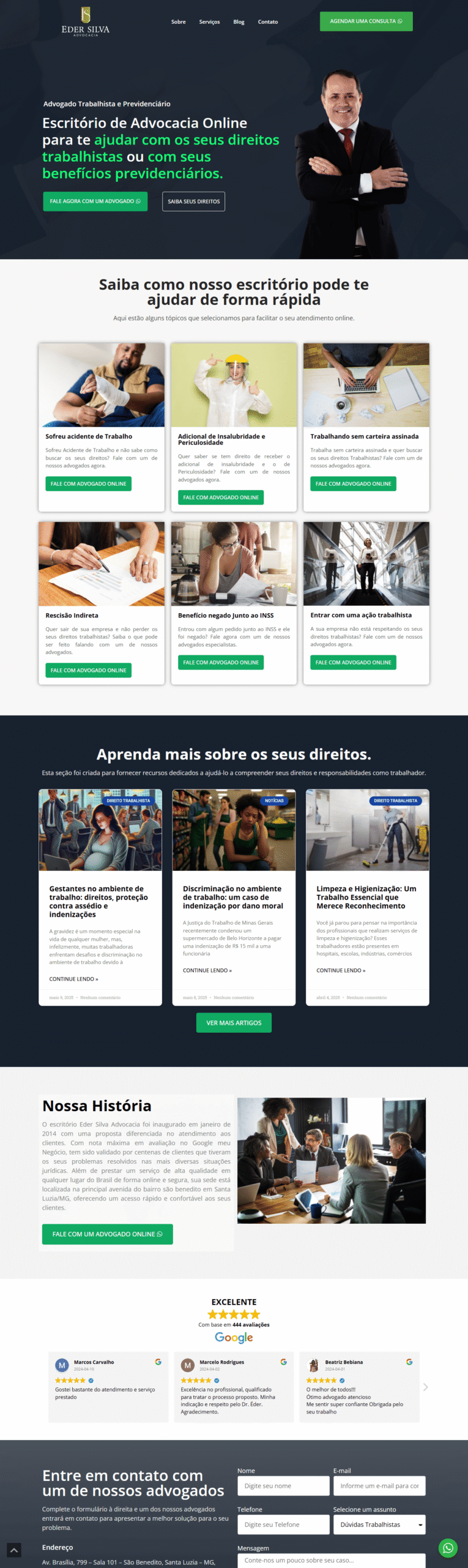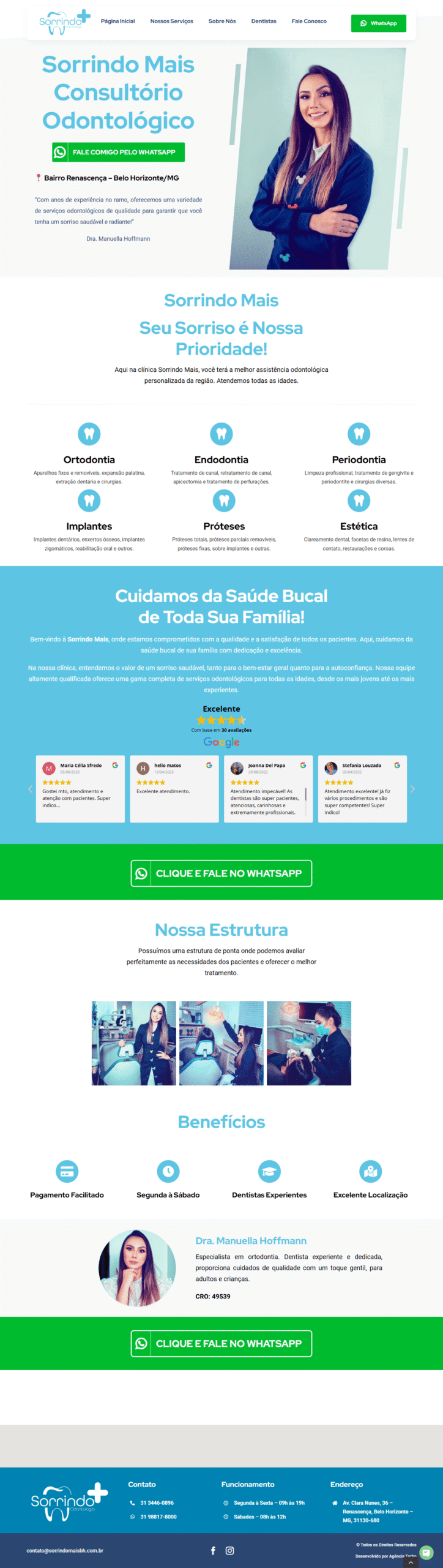 Estrutura pensada para transformar visitantes em clientes. Incluímos botões estratégicos, formulários e integração com WhatsApp.